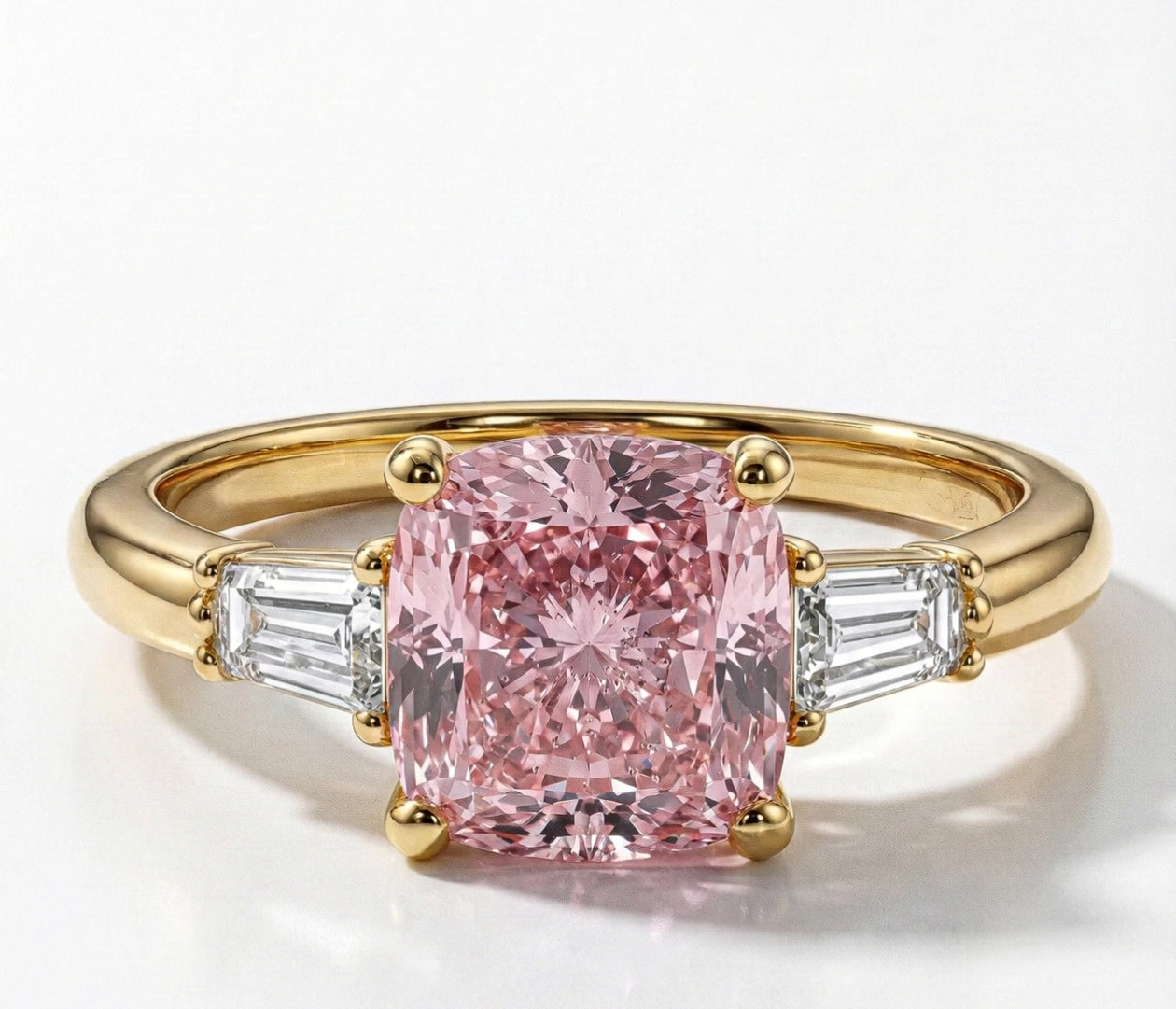 a dazzling fancy pink Cushion Cut Diamond VVS2