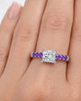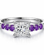 Elevate your collection with this sophisticated platinum ring, where a radiant princess-cut diamond takes centre stage alongside a striking amethyst. The cool luminosity of the diamond complements the deep violet hues of the amethyst, creating a striking contrast that captures light beautifully. Crafted in premium platinum for lasting durability and a luxurious finish, this piece combines timeless elegance with contemporary design. Perfect for those who appreciate distinctive gemstone combinations and exceptional craftsmanship.